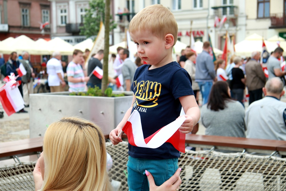 Członkowie i sympatycy Fml Kielce-Grodzki ? 2 maja rozdali mieszkańcom Kielc kilkaset flag, bransoletek i materiału propagującego wiedzę o polskiej tożsamości oraz symbolach narodowych.