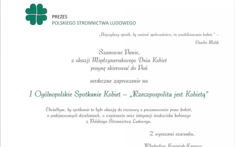 Jeśli jesteście chętne, aby wspólnie pojechać do Warszawy należy zgłaszać się do Biura ZW PSL do dnia 9 marca, do Dyrektor Biura Magdaleny Foksy – Kozieł pod nr tel. 41 344 22 77 lub 600-800-192, bądź osobiście w godz. 8.00-16.00.
