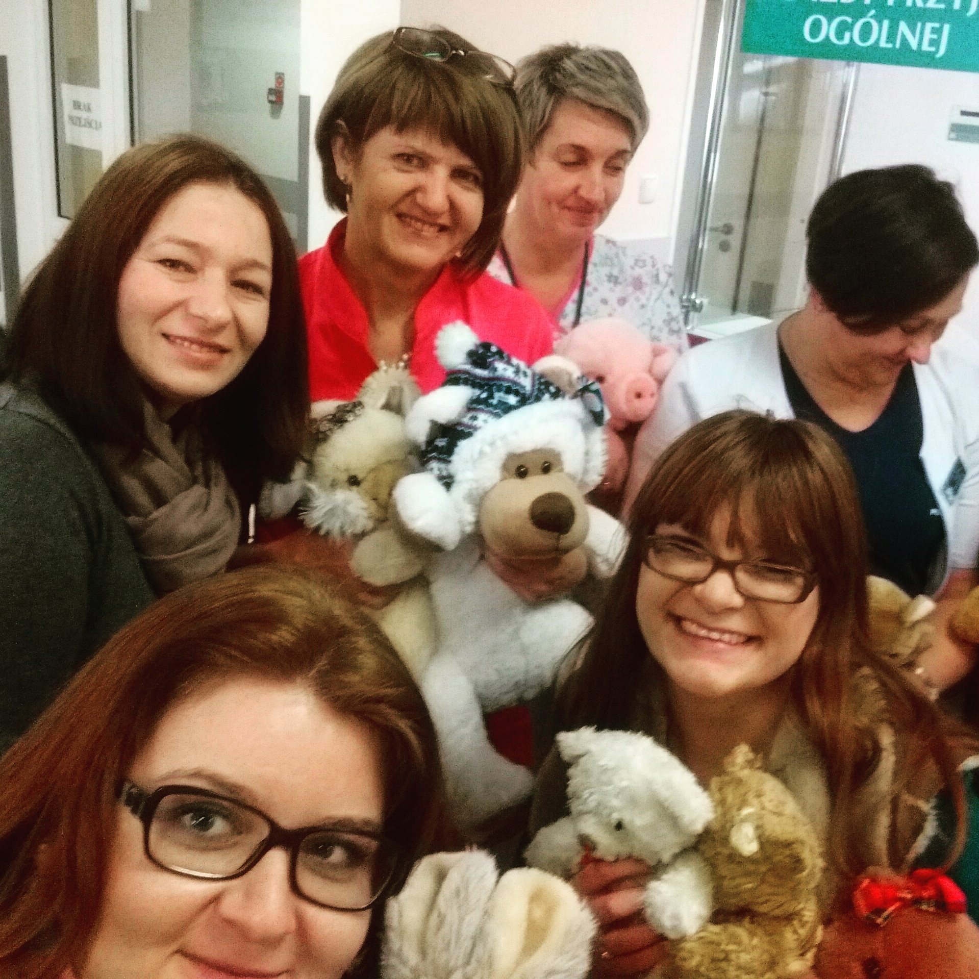 Ponad 300 pluszowych misiów trafi do rąk małych pacjentów i tym samym umili im pobyt w szpitalu. Joanna Mokwińska, Ewa Piotrowska-Szpara, Magdalena Michta, Magdalena Kumor, Karolina Grochowina, Anna Żak, Ewa Żak – To dzięki Wam to się zadziało!