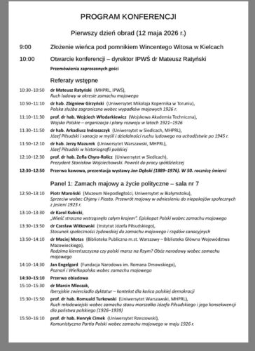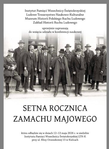 Z okazji 💯 rocznicy zamachu majowego Instytut Pamięci Wszechnicy Świętokrzyskiej, Ludowe Towarzystwo Naukowo-Kulturalne, Muzeum Historii Polskiego Ruchu Ludowego oraz Zakład Historii Ruchu Ludowego uprzejmie zapraszają do wzięcia udziału w ogólnopolskiej konferencji naukowej.