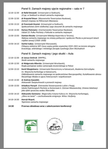Panel 5: Zamach majowy ujęcie regionalne – sala nr 7